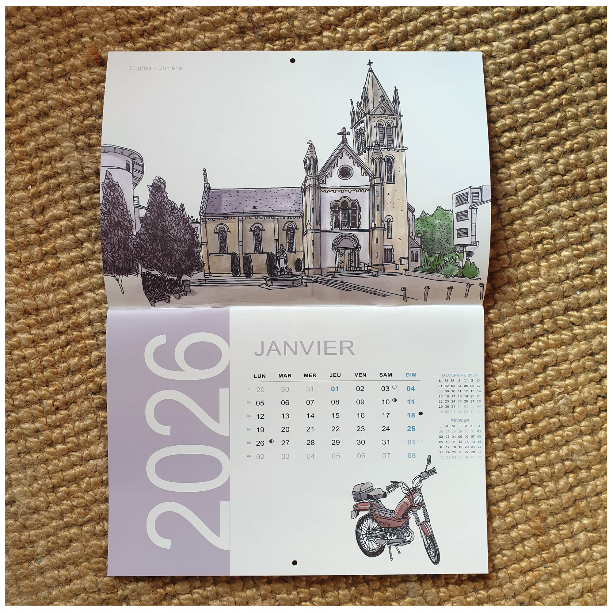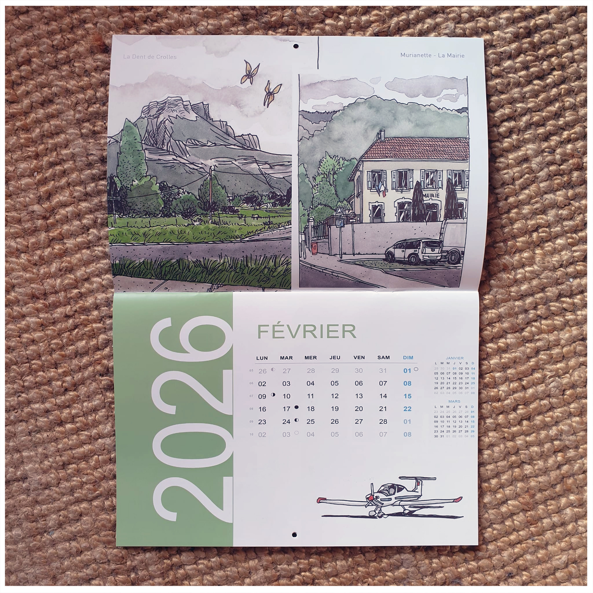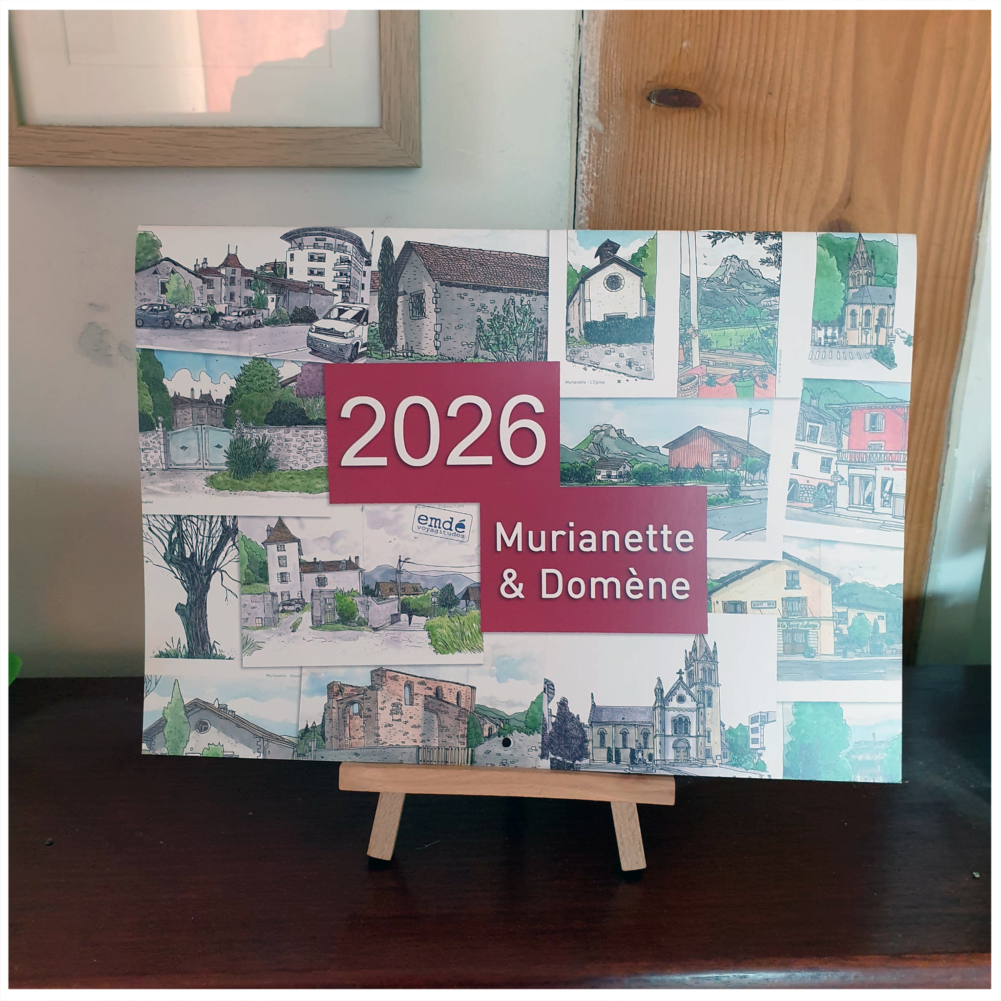Un calendrier 2026 illustré par des croquis réalisés in situ à Domène et Murianette par emdé   Format A4 29,7X21 // ouvert : 42X29,7